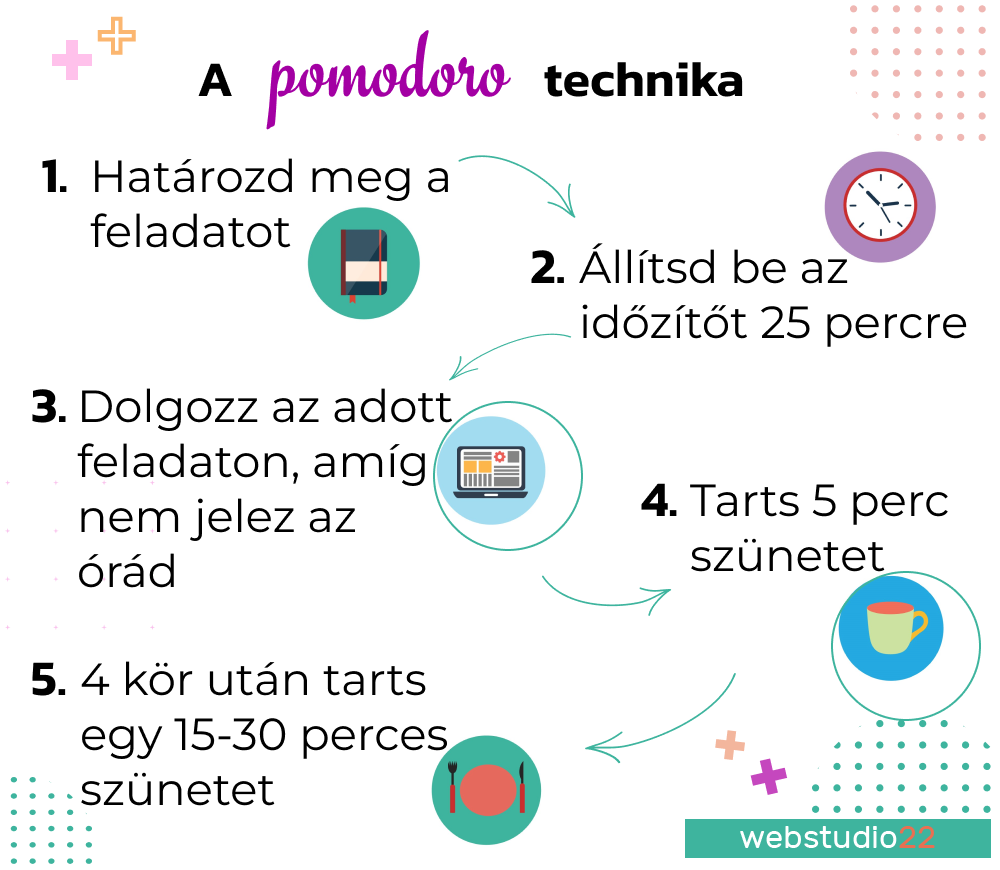 A Pomodoro-technika öt alapvető lépést tartalmaz: