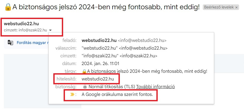 Az e-mail feladóira vonatkozó technikai információk Google-nél: https://support.google.com/a/answer/81126