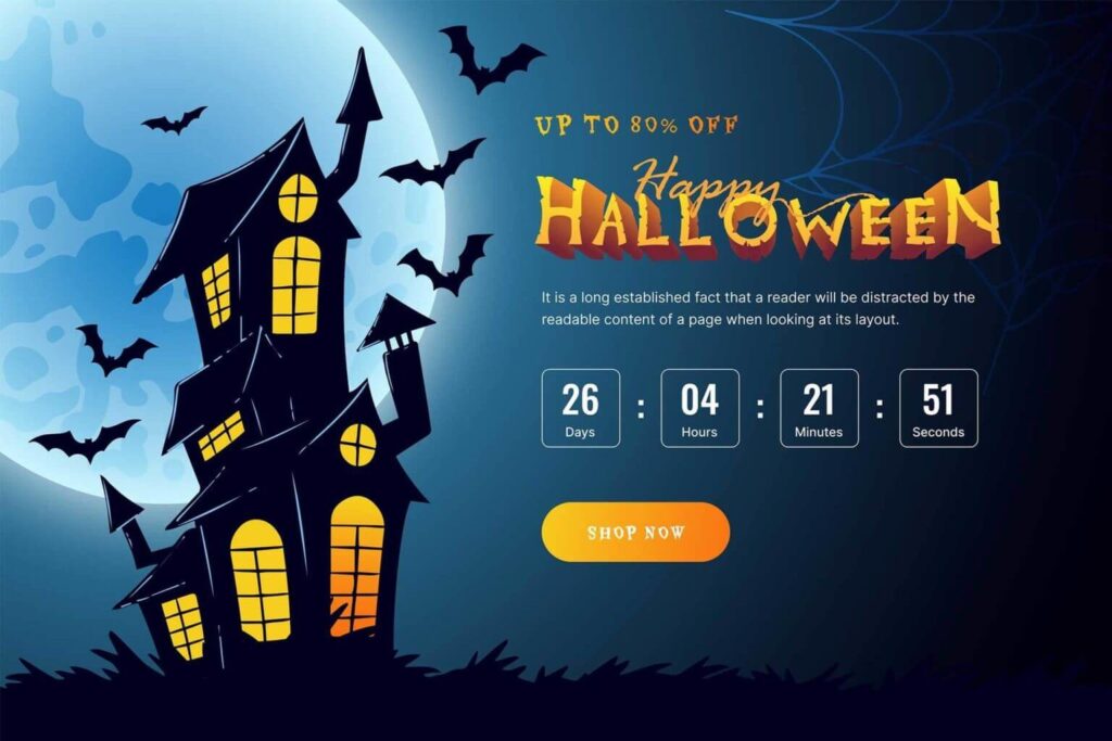 A cselekvésre ösztönző gombok vagy blokkok (CTA – Call To Action) remek konverziós rátákat produkálnak, itt az ideje Halloween jelmezbe öltöztetni őket. Egy visszaszámlálóval jelezhetjük, hogy ez a remek ajánlat nem tart örökké, így még jobb eredményre számíthatunk.